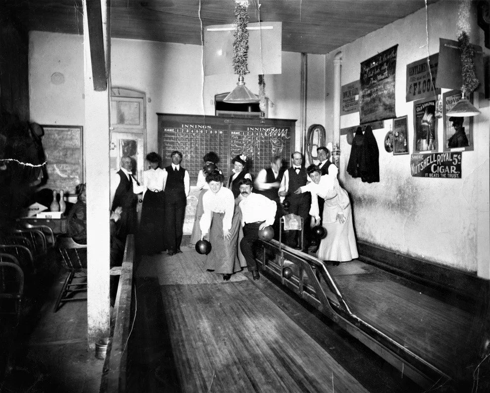 In 1919, the Boomerang advertised for pin boys wanted at the Brunswick Bowling Alley. Brunswick, an Ohio company, began by making pool and billiard tables in the 1840s.