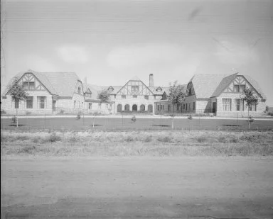 Shown is Laramie’s Ivinson Home for Ladies, soon after its construction, around 1931. Note that Grand Avenue, in the foreground, was still unpaved. This was the last philanthropic gift of Edward Ivinson to the city of Laramie, through a bequest in his will and the trust agreement he established for its operation. Ivinson died in 1928 and construction began in 1930. Architect for the Tudor revival style building was Wilbur A. Hitchcock, of Laramie. Thanks to Ivinson’s gift and other generous gifts to the endowment, no woman meeting age and health qualifications is turned away due to lack of funds. Photo courtesy of the Laramie Plains Museum