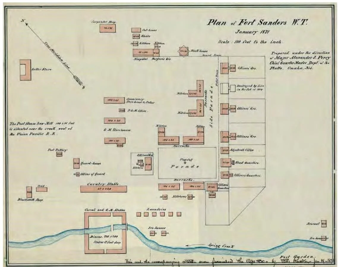 But before the railroad reached the Laramie Plains, in the summer of 1866, the U.S. military ordered the construction of Fort Buford about 3 miles south of where the center of Laramie now stands. Soon the name was changed to Fort Sanders (as there was already a Fort Buford in what is now North Dakota) and the location was soon occupied by the U.S. Army.